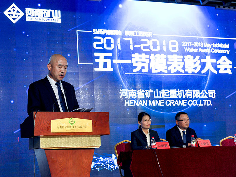 公司創(chuàng)始人、黨委書記崔培軍發(fā)表重要講話。他首先向全體員工致以節(jié)日的問候,向獲獎勞模表示祝賀!感謝大家為公司所做出的努力與貢獻。他就勞模精神、工匠精神、質(zhì)量比武、生產(chǎn)工期、素質(zhì)素養(yǎng)五個方面提出希望和要求。希望在勞模精神的鼓舞下,全體員工要抓緊生產(chǎn),服務(wù)客戶。繼續(xù)深化質(zhì)量月活動。立足本職崗位,再創(chuàng)新的佳績。踐行工匠精神,以更高標準嚴格要求自己。團結(jié)一心,眾志成城,努力將河南礦山打造成為一個享有盛譽的起重企業(yè)。