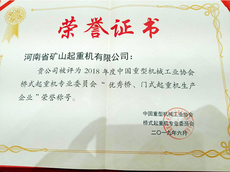 喜訊|河南礦山再次榮獲“門式起重機生產企業(yè)”榮譽稱號